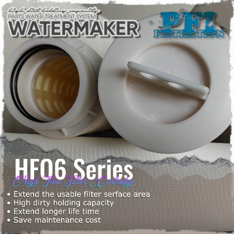 PFI PPHF pleated high flow filter cartridge is constructed with 6 inch (152 mm) large diameter which offers super high flow rate, it can greatly save water treatment plant footprint and reduce filter change-out cost.